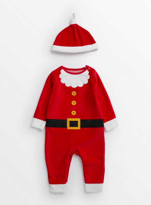 Buy Christmas Santa Velour Sleepsuit Hat Up to 1 mth Sleepsuits