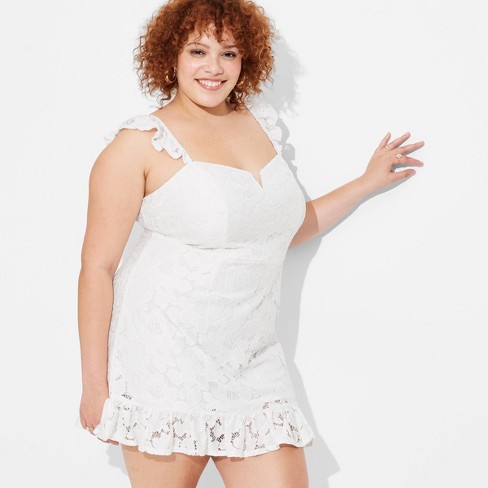 Women s Flutter Sleeve Lace Slip Dress Wild Fable White 2x Target