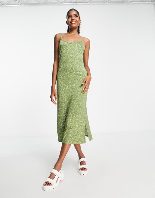 Dresses Moss Green Strappy Midi Linen Dress