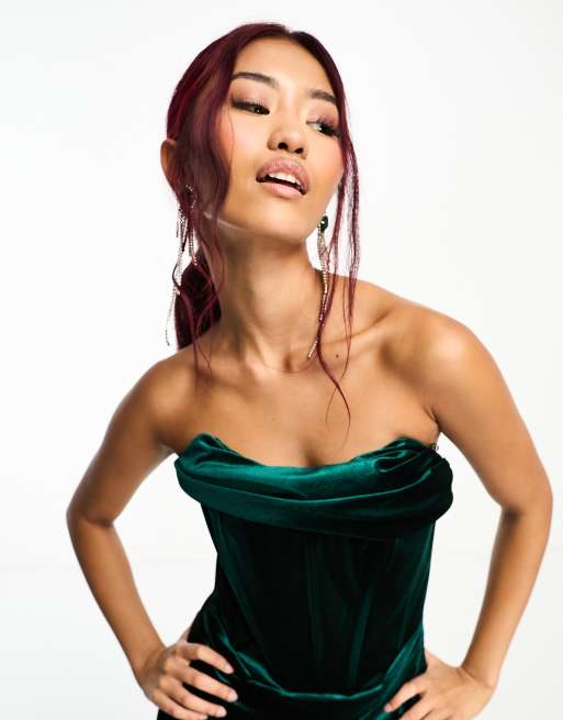 Green velvet bardot clearance dress