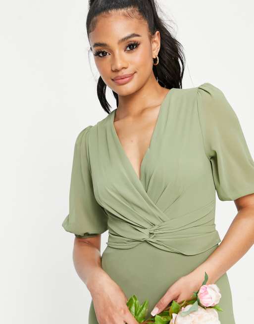 TFNC Bridesmaid wrap front maxi dress in dusky green