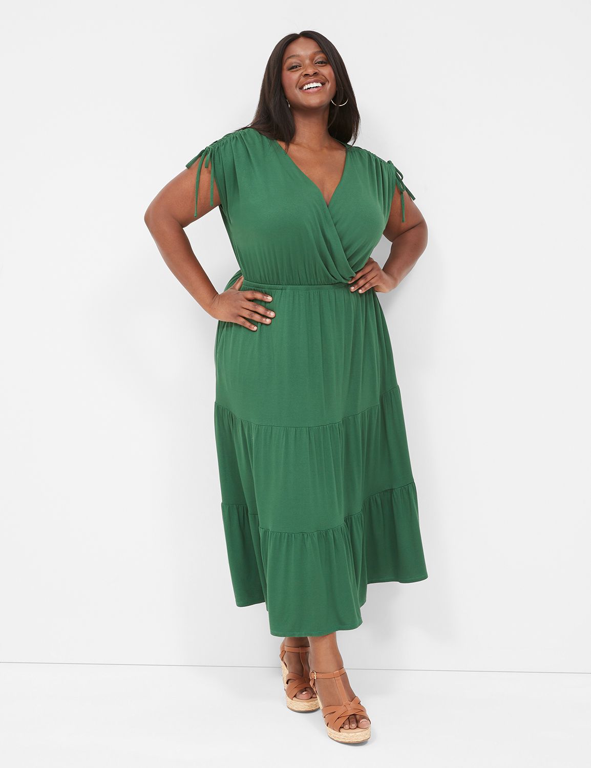 Lane bryant green clearance dress, Flutter Sleeve Shirred Midi Dress 1 clearance