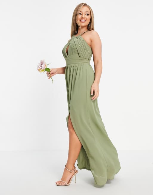 TFNC Bridesmaid pleated maxi dress in dusky green ASOS