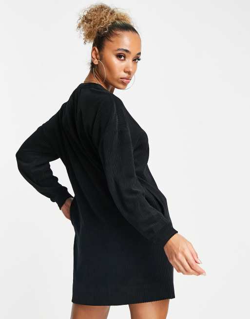Urban Classics rib velvet long sleeve jumper dress in black ASOS