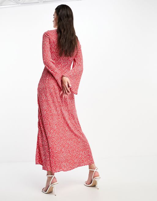 Glamorous long sleeve v neck midi shift dress in red ditsy