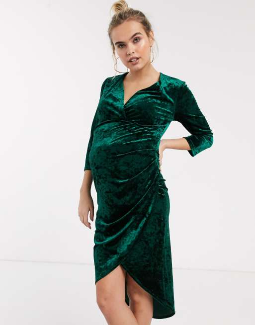 TFNC Maternity velvet midi wrap dress in emerald ASOS
