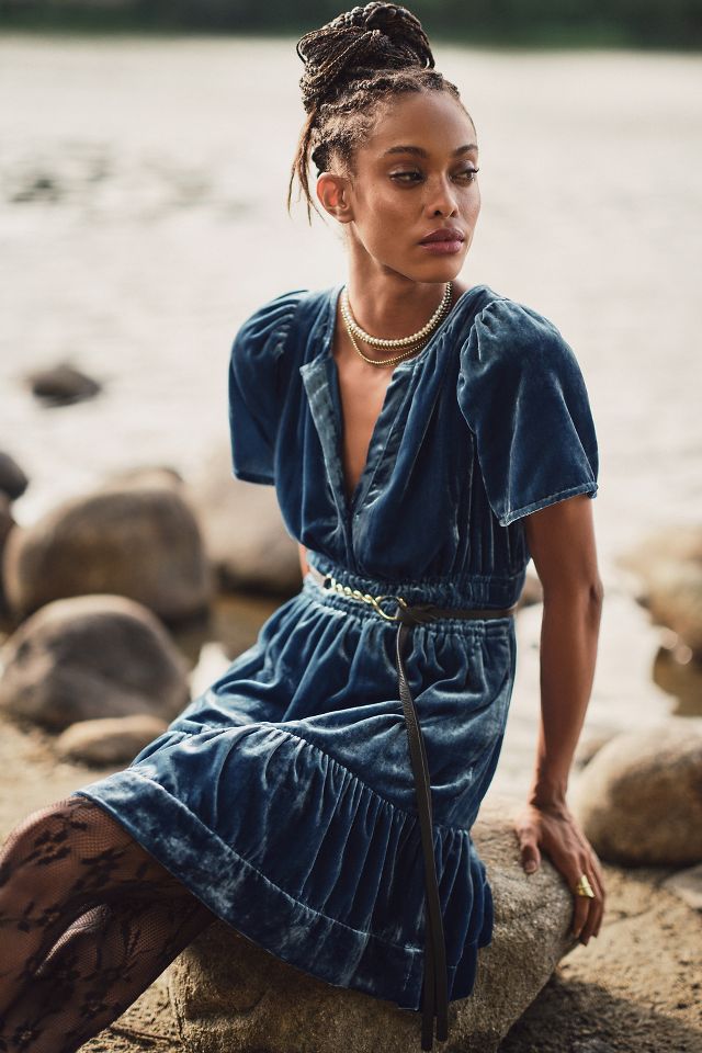 Anthropologie blue velvet clearance dress