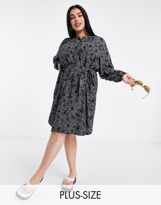 Simply Be shift dress with balloon sleeves in black print ASOS