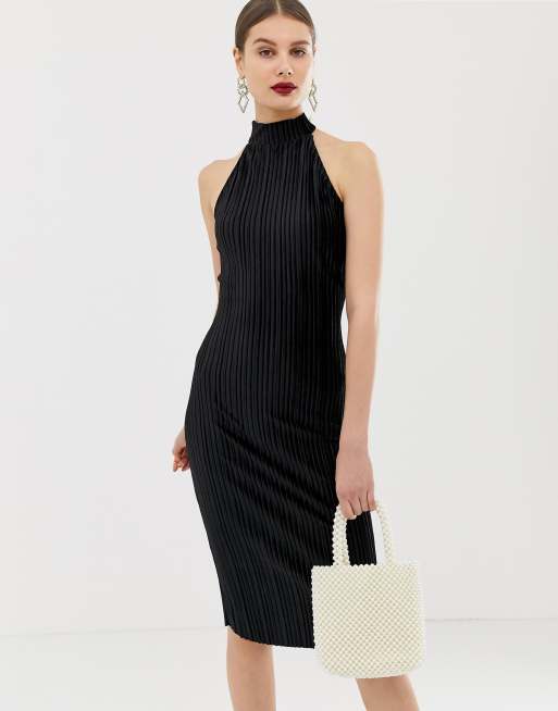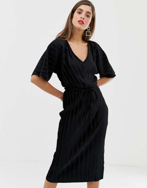 River Island kimono sleeve plisse dress in black ASOS Plisse