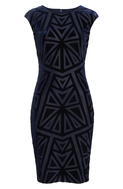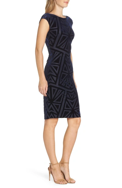 Vince camuto velvet clearance jacquard sheath dress, Vince Camuto Metallic Jacquard Fit Flare Dress Blue Gold 6 clearance