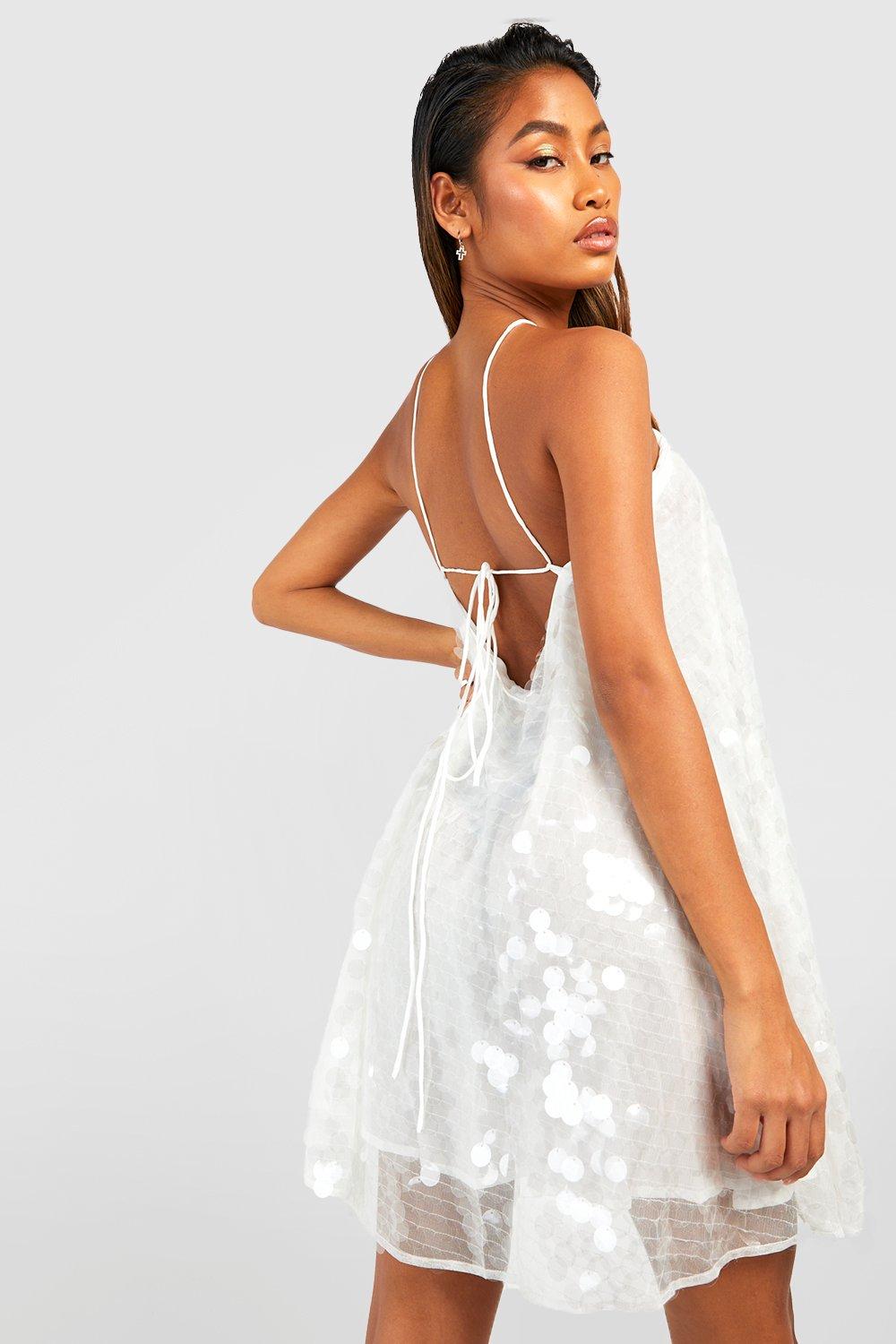 Boohoo white sequin clearance dress, Disc Sequin Halterneck Swing Party Dress boohoo clearance