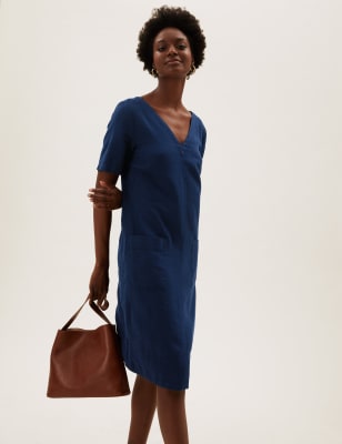 Linen Blend V Neck Shift Dress M S Collection M S