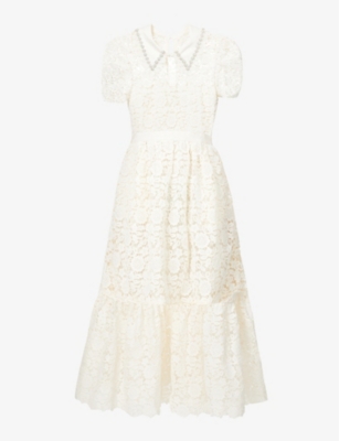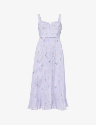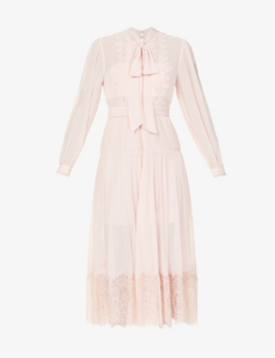 Selfridges clearance self portrait, SELF PORTRAIT Pleated bodice embroidered chiffon midi dress clearance