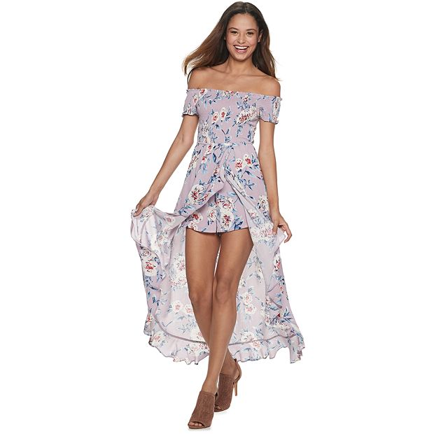 Rue21 White Floral Smocked Off The Shoulder Maxi Romper Hamilton