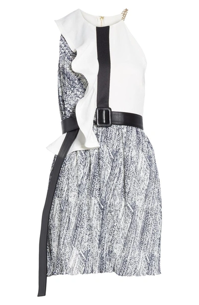 Self portrait Belted Contrast Frill Mini Dress In Ivory navy
