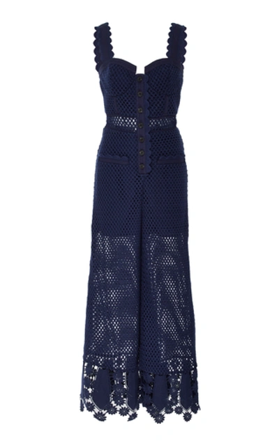 Self portrait fishnet clearance crochet dress, Self portrait Fishnet Crochet Lace Jumpsuit In Navy ModeSens clearance