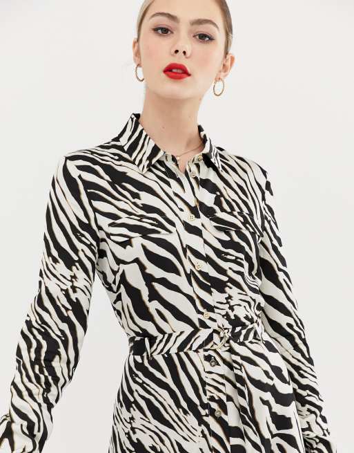 Karen millen zebra clearance print shirt dress, Spliced Stripe Printed Wrap Woven Midi Dress Karen Millen clearance