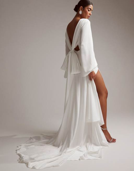 Ivory silk wedding clearance dress, ASOS DESIGN Mary satin wedding dress with drape bow back and blouson sleeve in ivory clearance