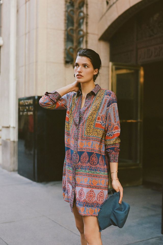Casablanca clearance silk shirtdress, Anthropologie Rare Maeve Casablanca Silk Shirt Dress paisley clearance