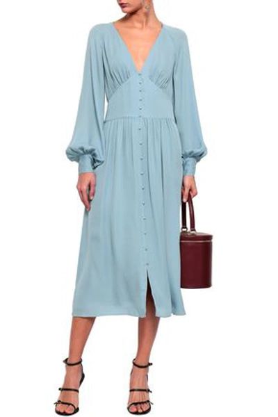 Joie Kyria Gathered Silk Crepe De Chine Midi Dress In Sky Blue