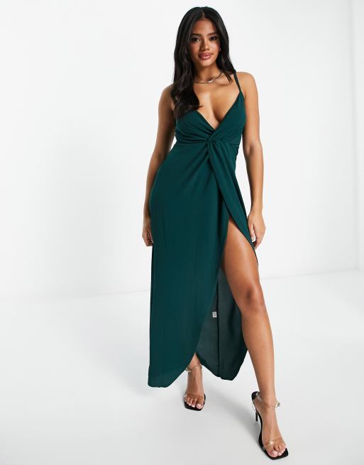 Femme Luxe strappy ruched skirt midaxi dress in emerald green ASOS
