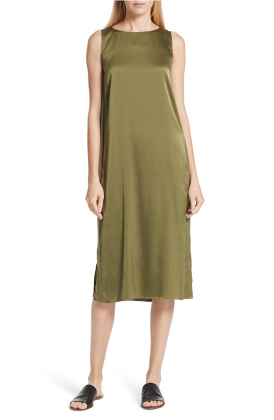 Eileen fisher bateau clearance neck silk dress, Eileen Fisher Bateau neck Silk Charmeuse Shift Dress In Olive ModeSens clearance
