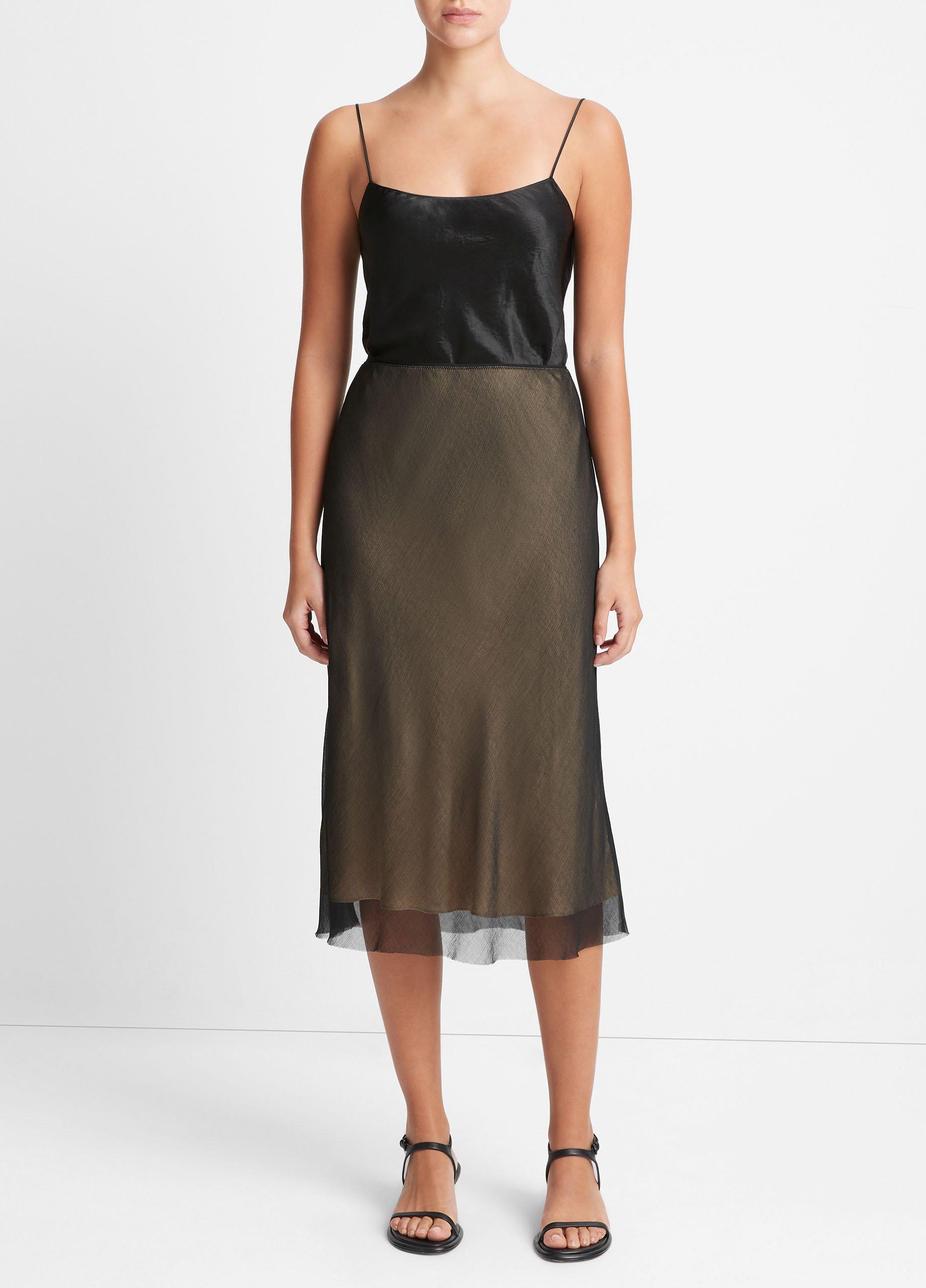 Vince Extended Square Neck Satin Tank Dress in Black Vince Unfold