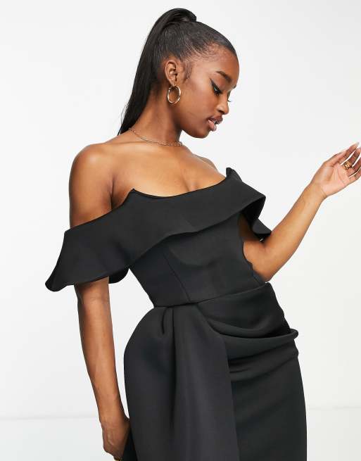ASOS DESIGN bardot pencil dress with sash in black ASOS
