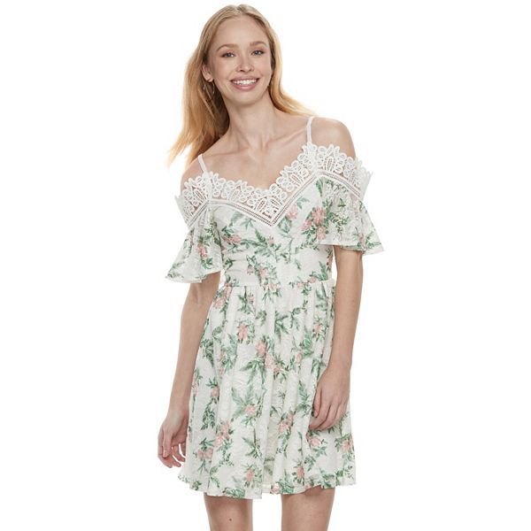 Disney Princess Juniors Floral Lace Cold Shoulder Dress