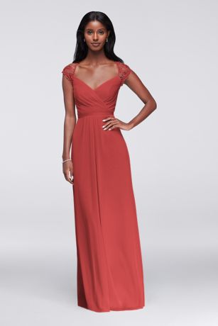 Long Mesh Dress with Lace Cap Sleeves David s Bridal