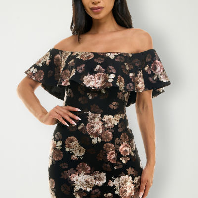 Premier amour short sleeve clearance off the shoulder sheath dress, Premier Amour Floral Foil Short Sleeve Midi Sheath Dress clearance