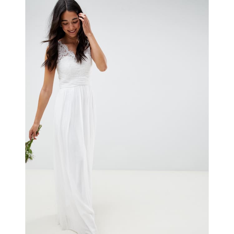 Little Mistress sheer overlay wedding dress with lace detail ASOS