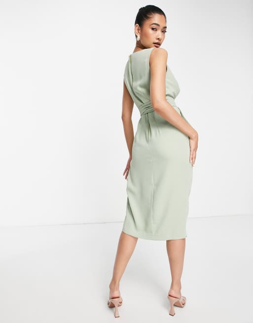 Closet London sleeveless wrap midi dress in sage green