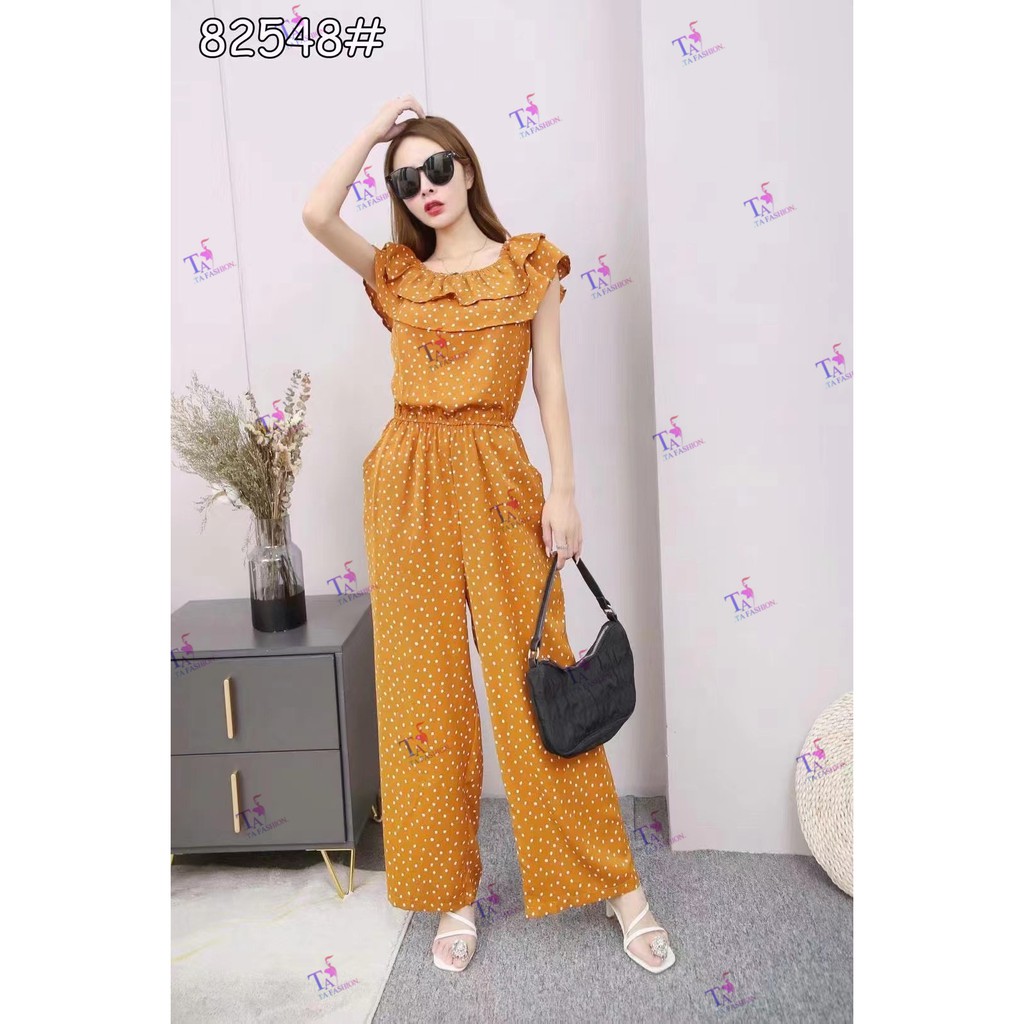 TATA Fashion Off shoulder Polka dots Hawaiian jumpsuit for women
