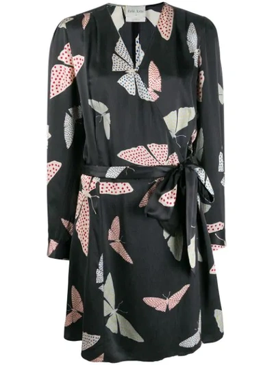 Reiss lita butterfly clearance dress, Butterfly Print Hammered Silk Wrap Dress In Grey clearance