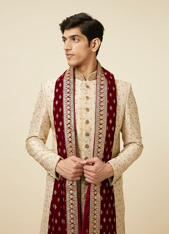 Buy Off White Jacquard Sherwani Suit Online in India Manyavar