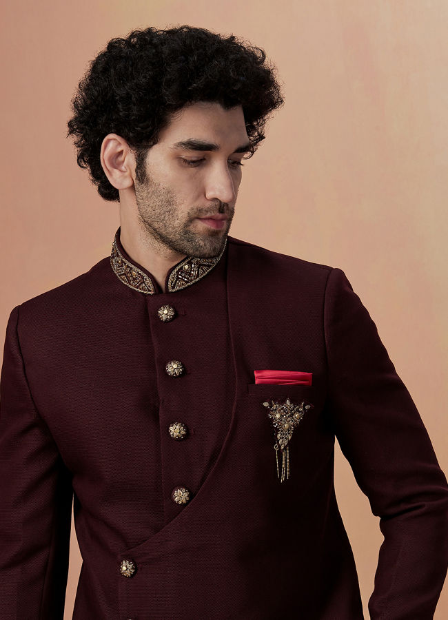 Buy Maroon Self Design Bandhagala Indo Western Online in the UK