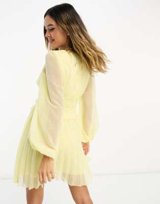 ASOS DESIGN button through ruched waist pleated mini dress in