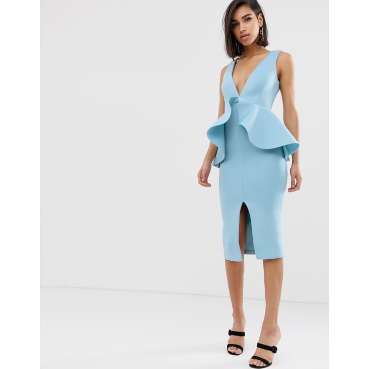 Lavish Alice extreme frill peplum hem scuba midi dress in blue