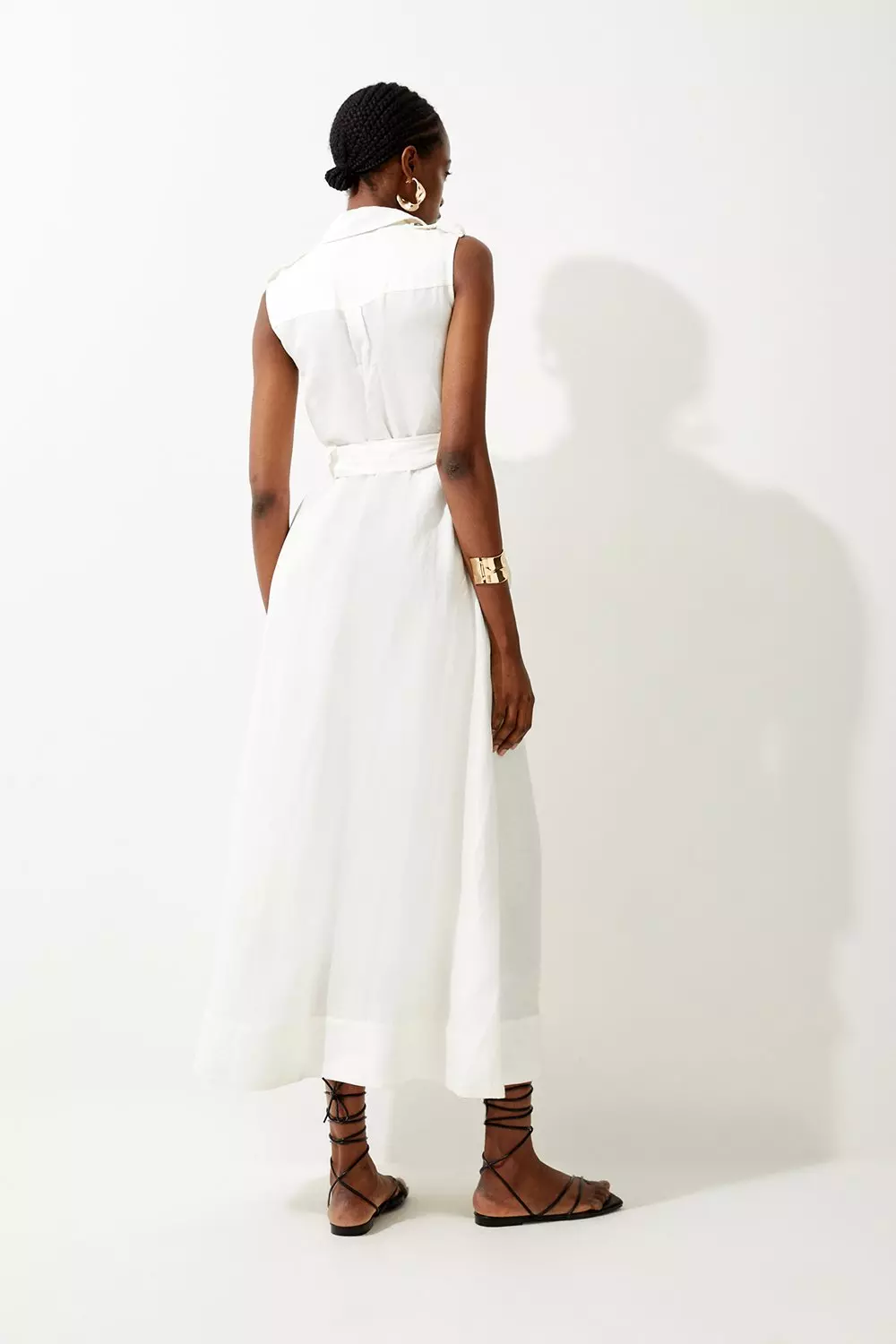 White linen sleeveless clearance dress, Organic Linen Sleeveless Dress EILEEN FISHER clearance