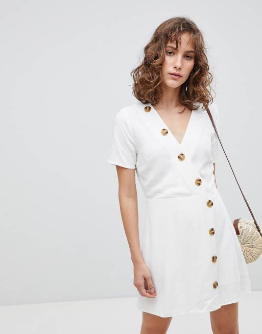 Moon River Linen Mix Button Front Dress ASOS