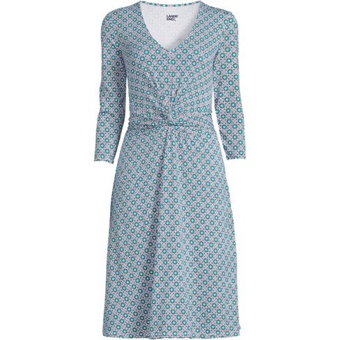 Lands end fit clearance and flare, Lands End Green Floral Print Casual Fit Flare Dress Spandex clearance