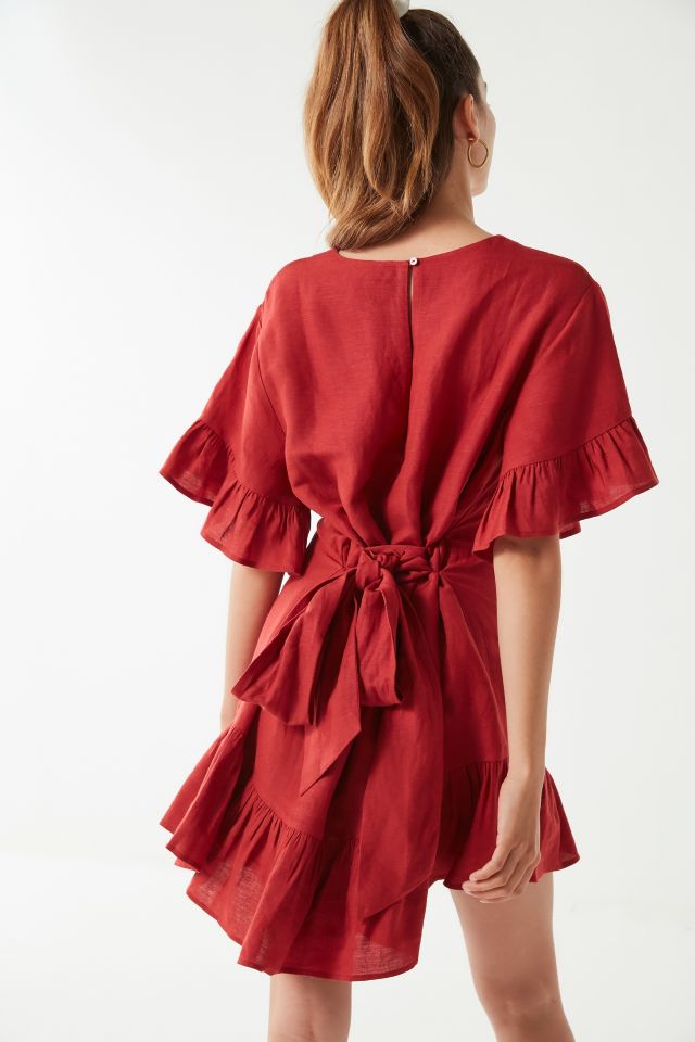 Uo suddenly spring linen ruffle clearance tie dress, Robe Mistral terracotta en jersey technique INDIES clearance