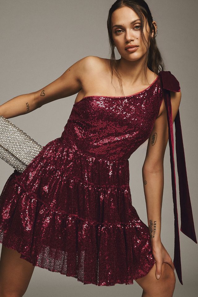 Fit and flare clearance sequin cocktail dress, Geisha Designs One Shoulder Fit Flare Sequin Mini Dress clearance