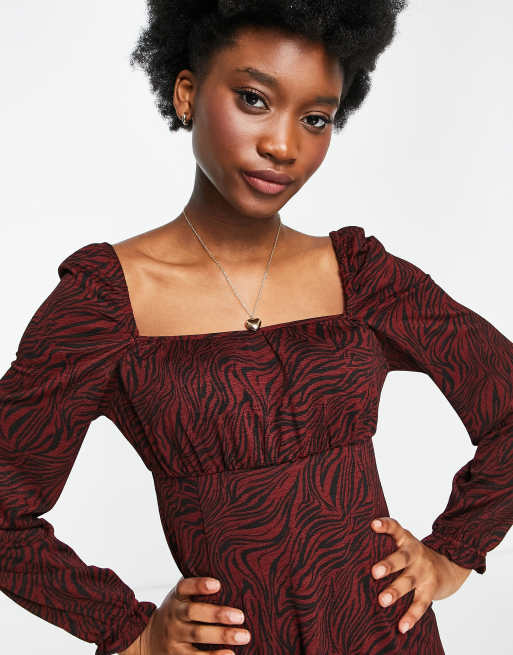 Miss Selfridge square neck fit flare mini dress in zebra print