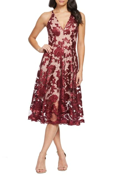Dress The Population Maria Embellished Fit Flare Dress In Berry
