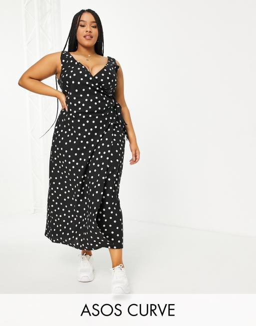 Linen clearance spot dress, ASOS DESIGN Curve linen wrap maxi dress in mono spot print ASOS clearance