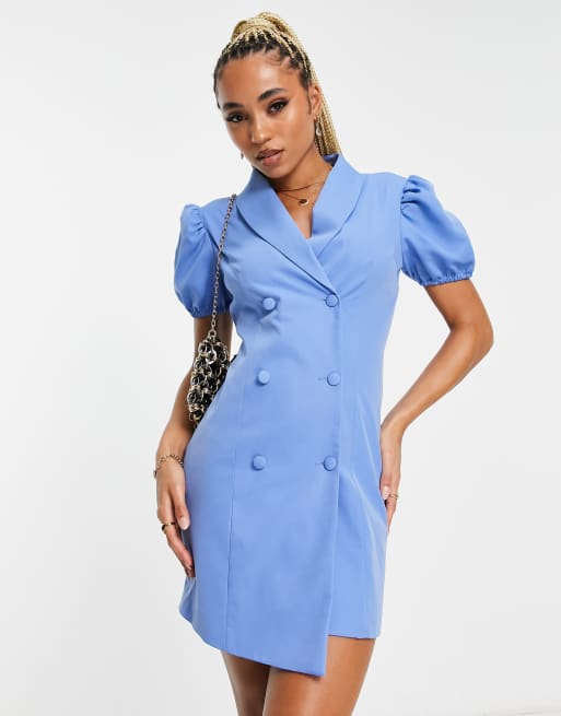 Unique21 back detail puff sleeve blazer dress in cornflower blue