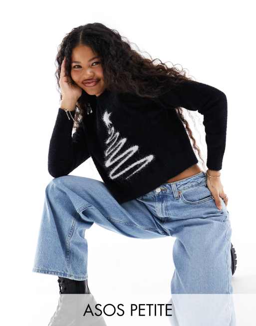 Petite clearance christmas sweaters, ASOS DESIGN Petite Christmas sweater in eyelash knit with metallic tree clearance