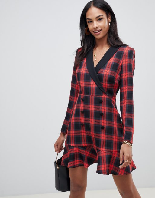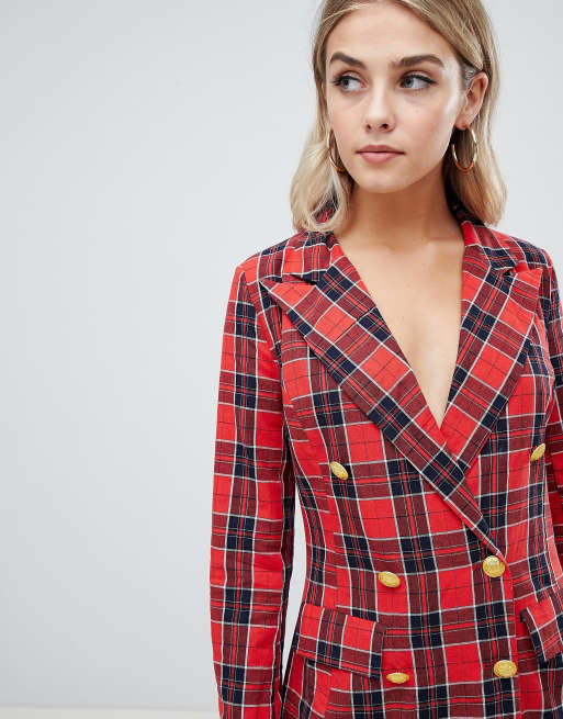 Missguided tux dress with gold buttons in red tartan ASOS